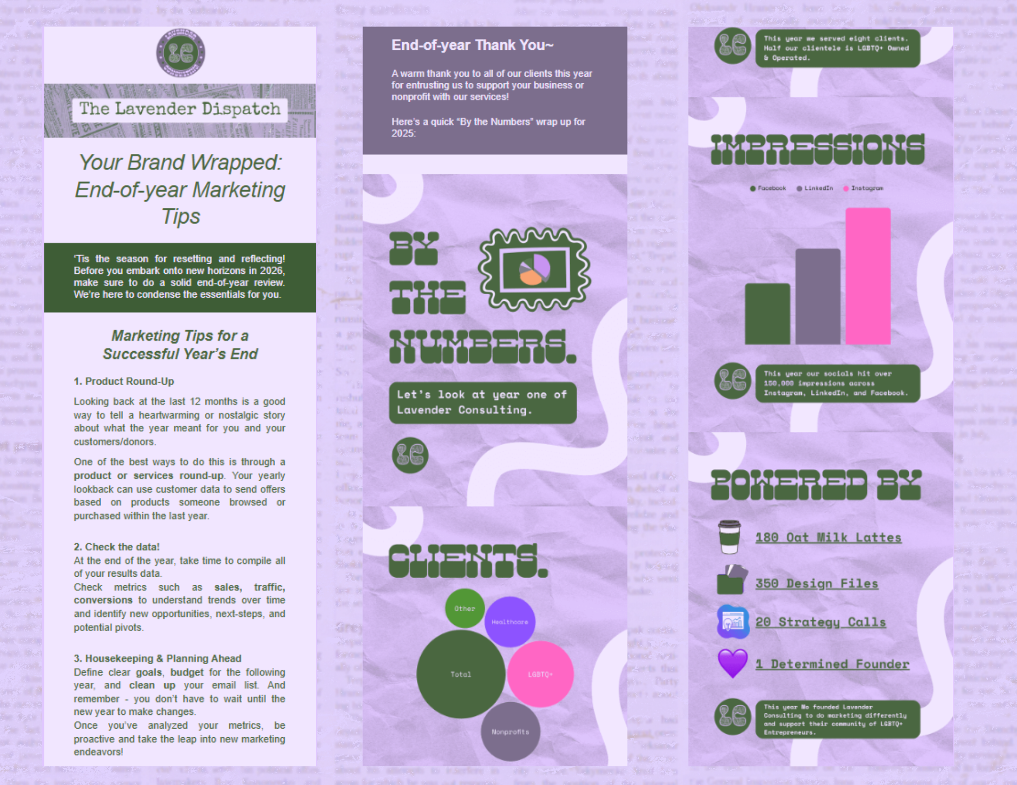 → The “Lavender Dispatch” newsletter received over 25k impressions on January social content, maintained an average of 80% newsletter open rates and gained 517% audience growth since November 2025.